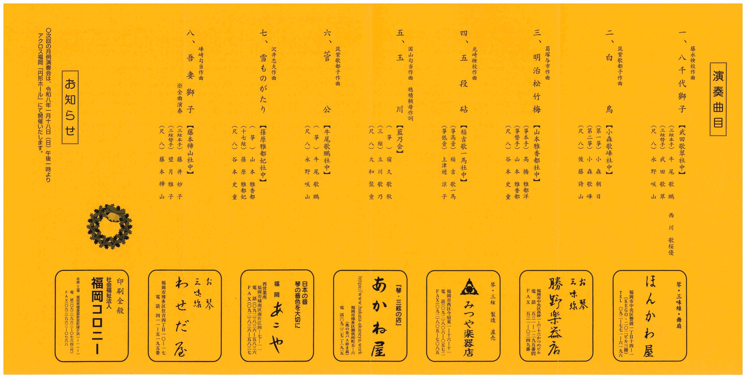 会員: 第一部会 箏曲 河原 抄子、河原 久子、小森 歌峰、柴田 歌秀、筑紫 純子、宮崎 裕子、安武 由香理、渡辺 シズ